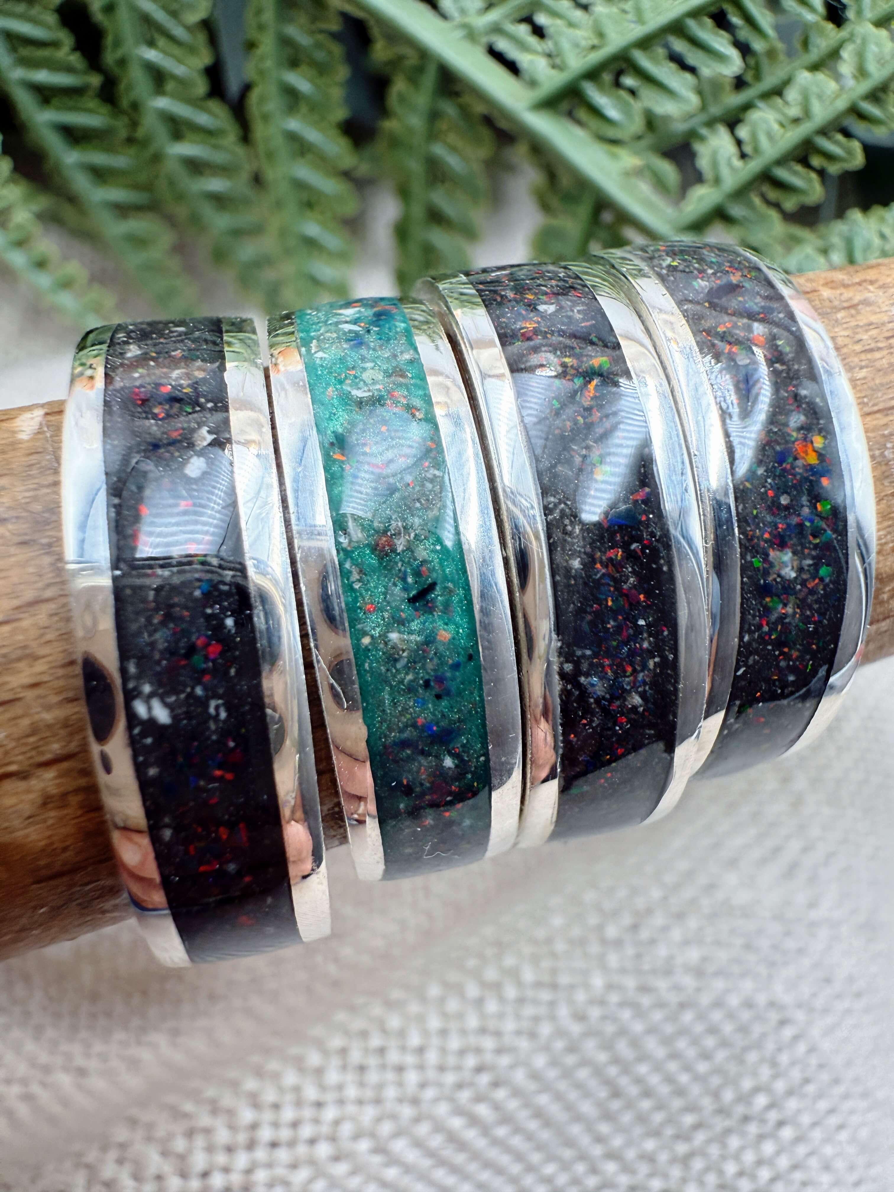 Memory jewellery for men can be made with ashes, hair, dried flowers or even breastmilk.