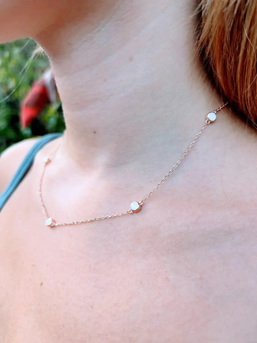 This beautiful breastmilk necklace is so beautiful and simple. 6 dainty breastmilk stones that you can customise however you choose.