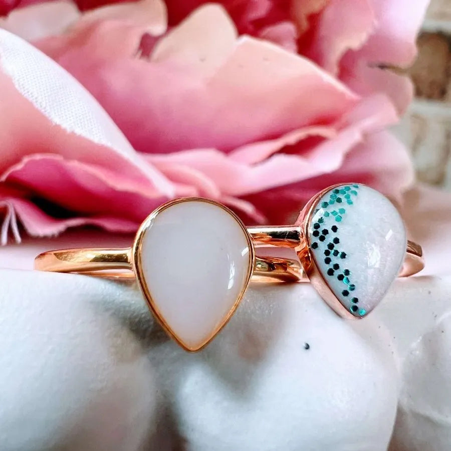 Willow is a timeless sterling silver breastmilk ring. A simple pear, 6 x 8 mm available with rose gold, yellow gold or white gold plating. A classic and magical way to celebrate your breastfeeding journey.