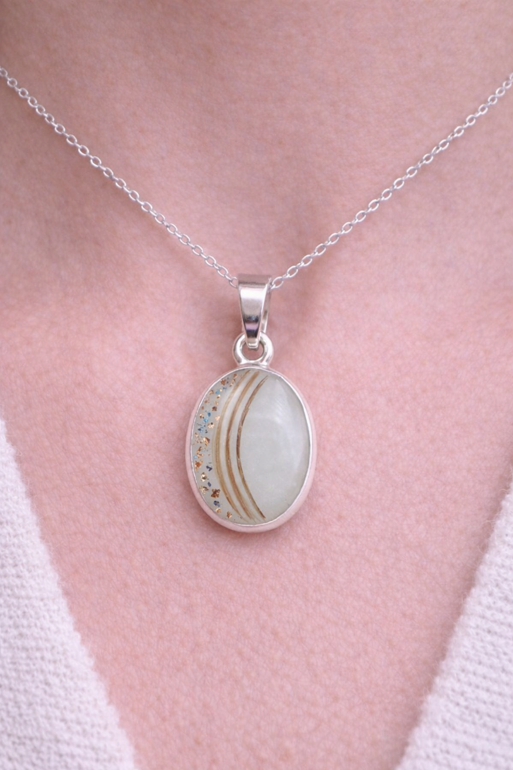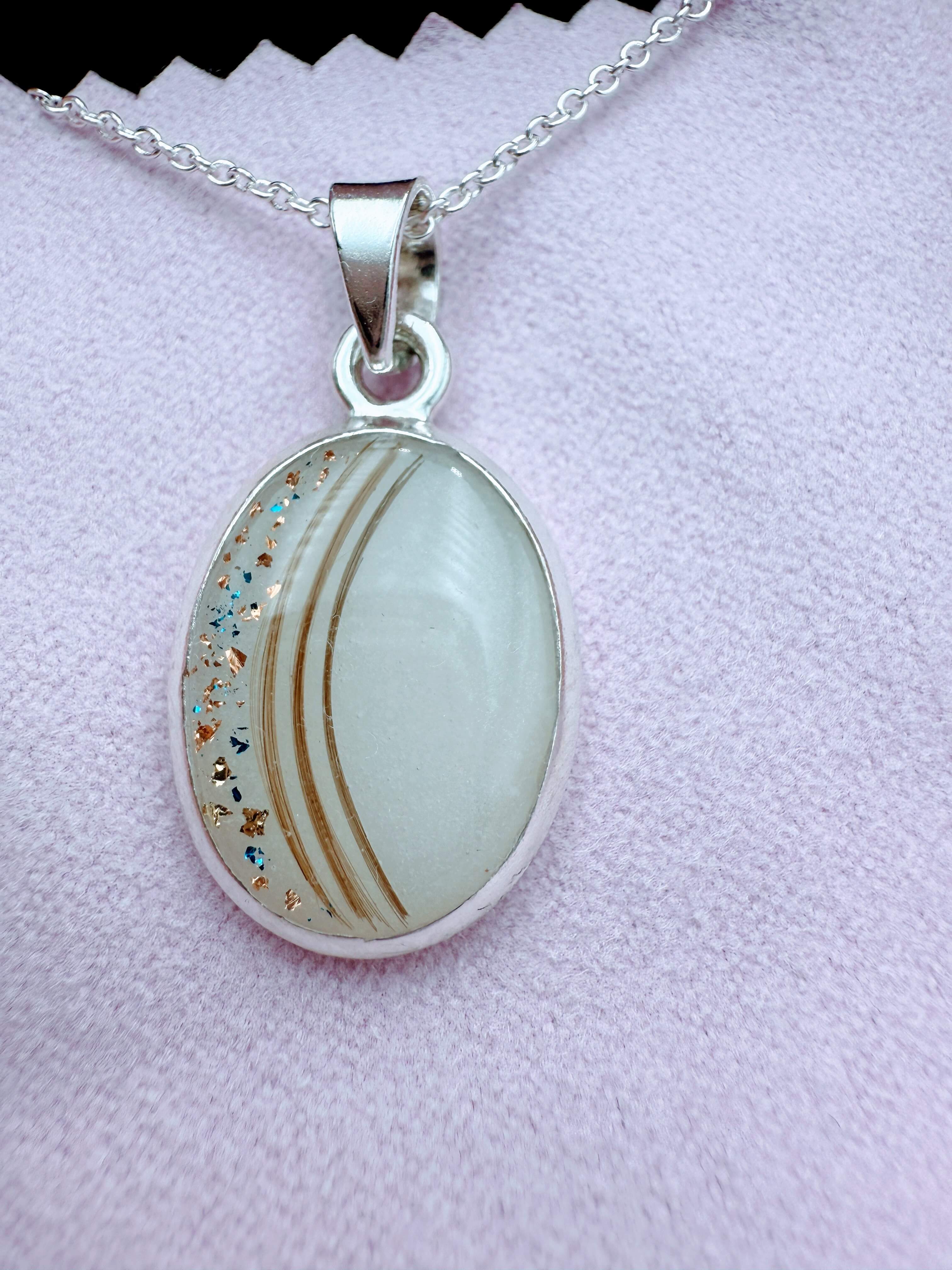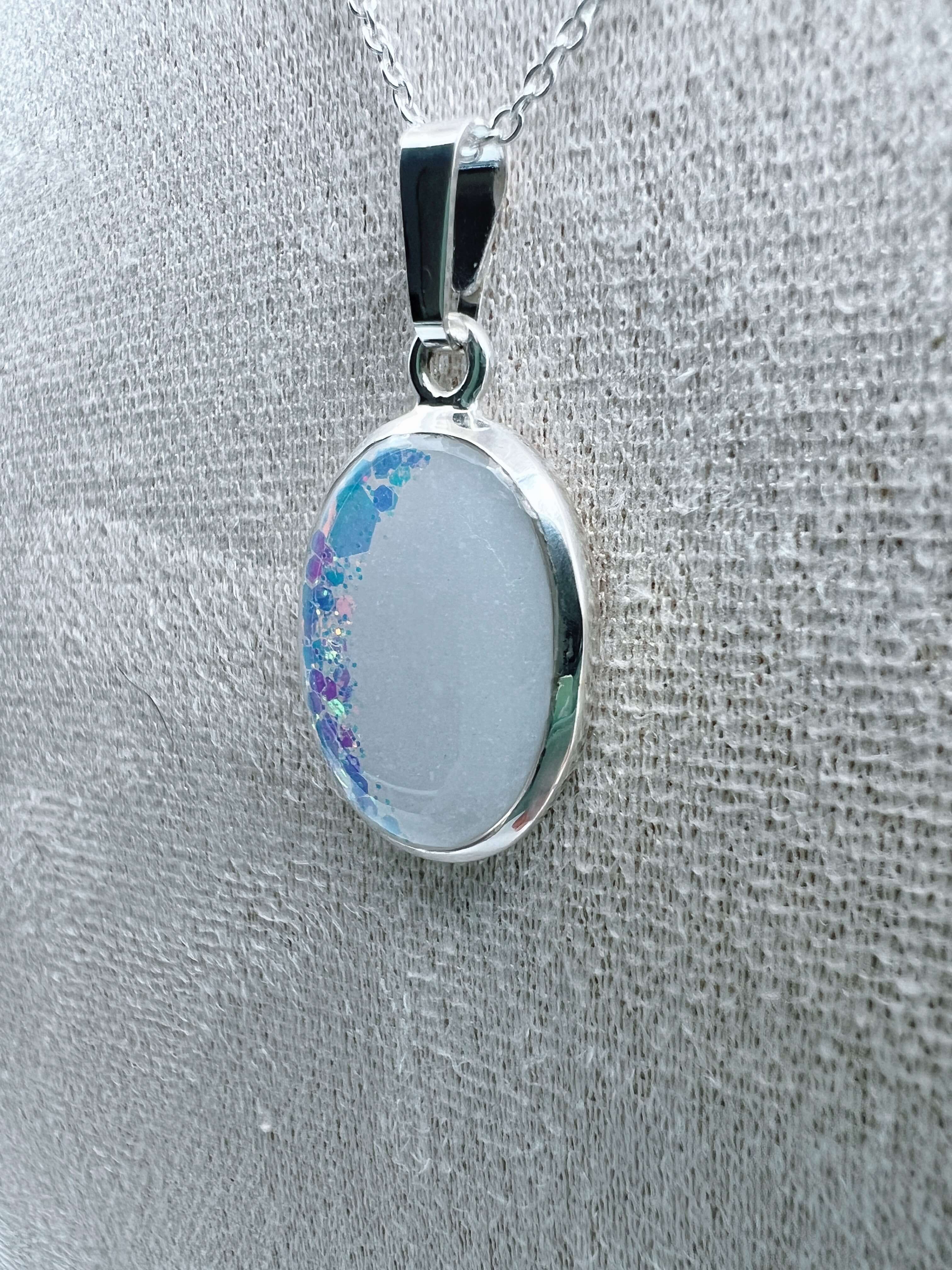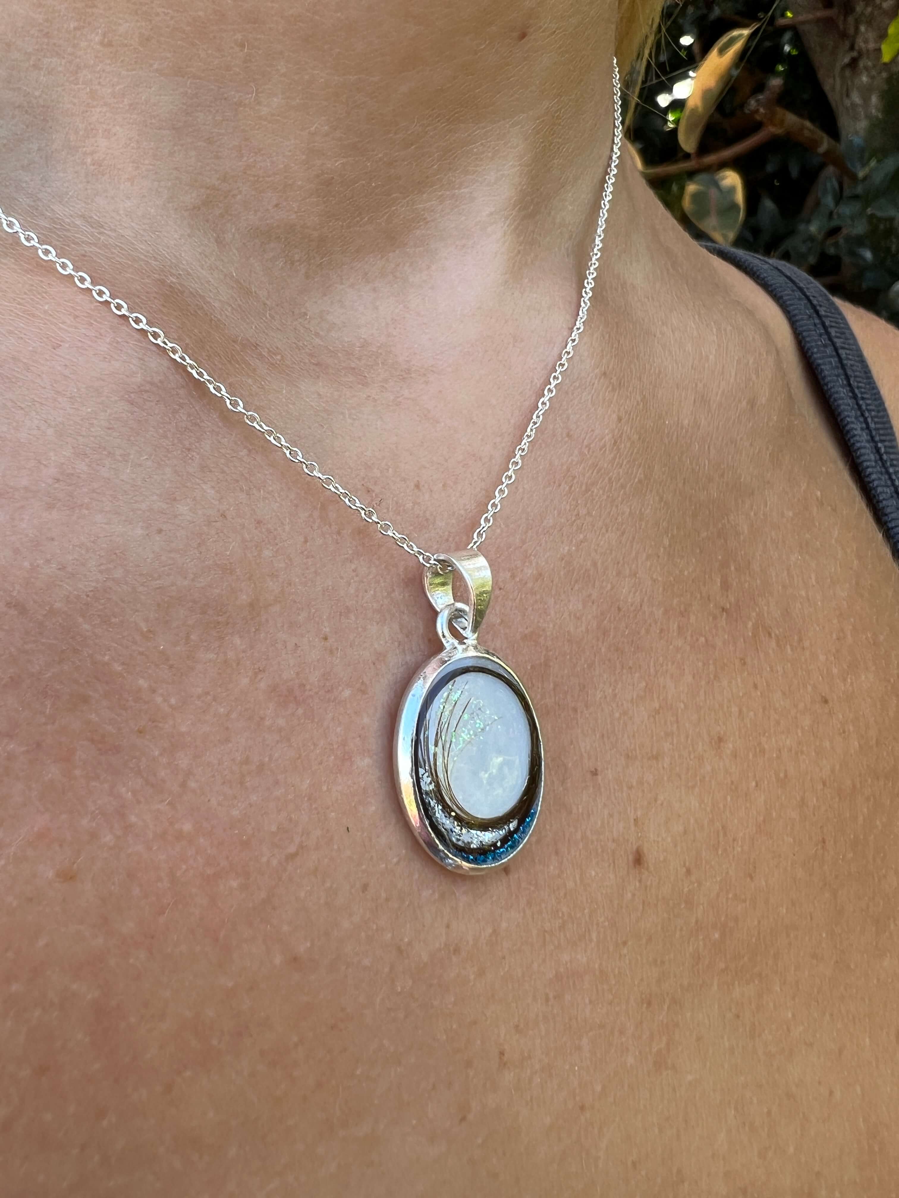 The Classic Oval Pendant is a statement keepsake designed to hold the most meaningful parts of your story. Measuring approximately 18 x 13mm, this larger oval pendant offers plenty of space to preserve your breast milk and any additional inclusions, making each piece completely unique.