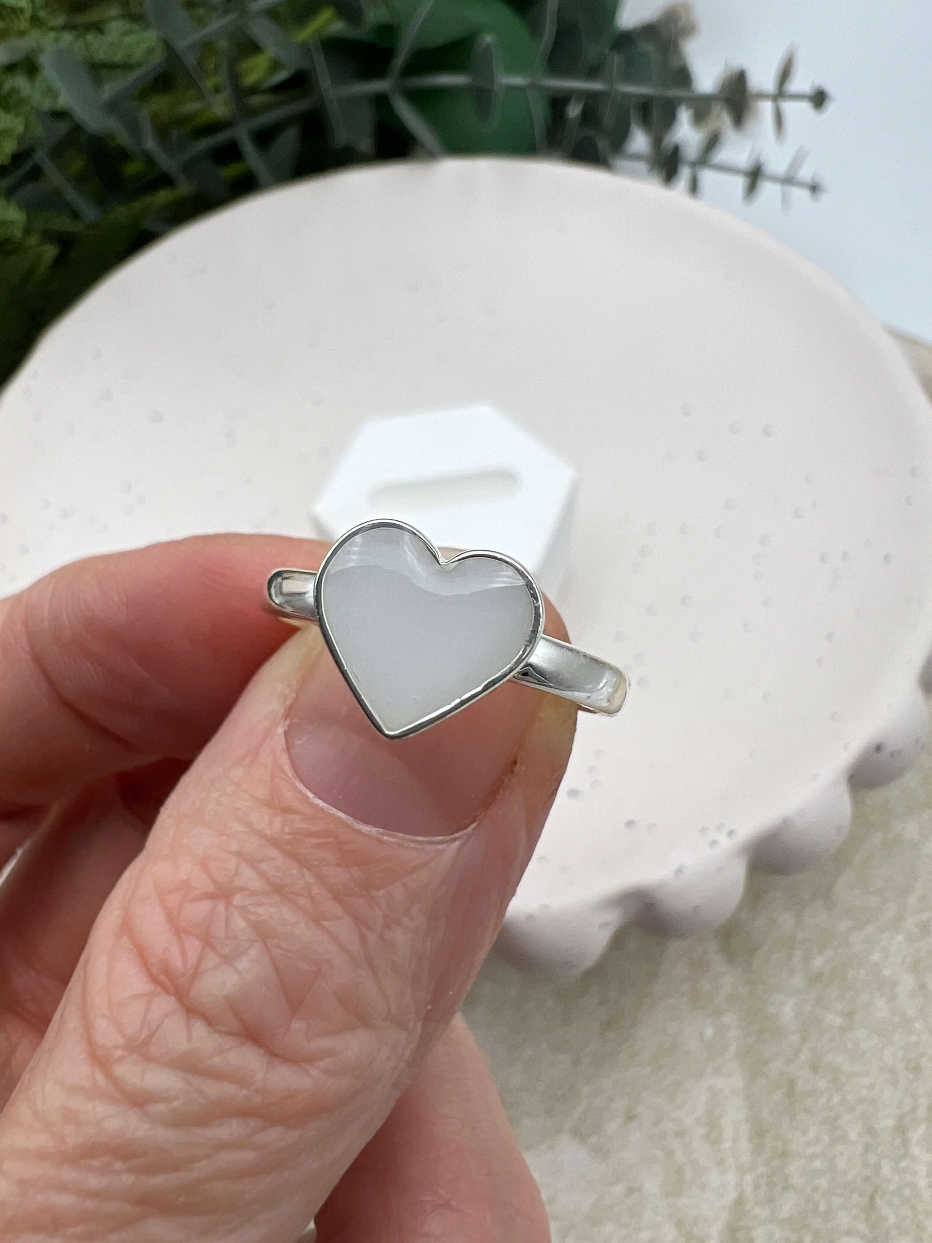 This delicate heart-shaped breast milk ring is a beautiful way to honour your breastfeeding journey and the bond you’ve built along the way. The 8mm heart holds your preserved breast milk, each one made by hand and completely unique, just like your story.