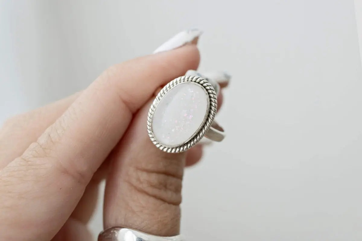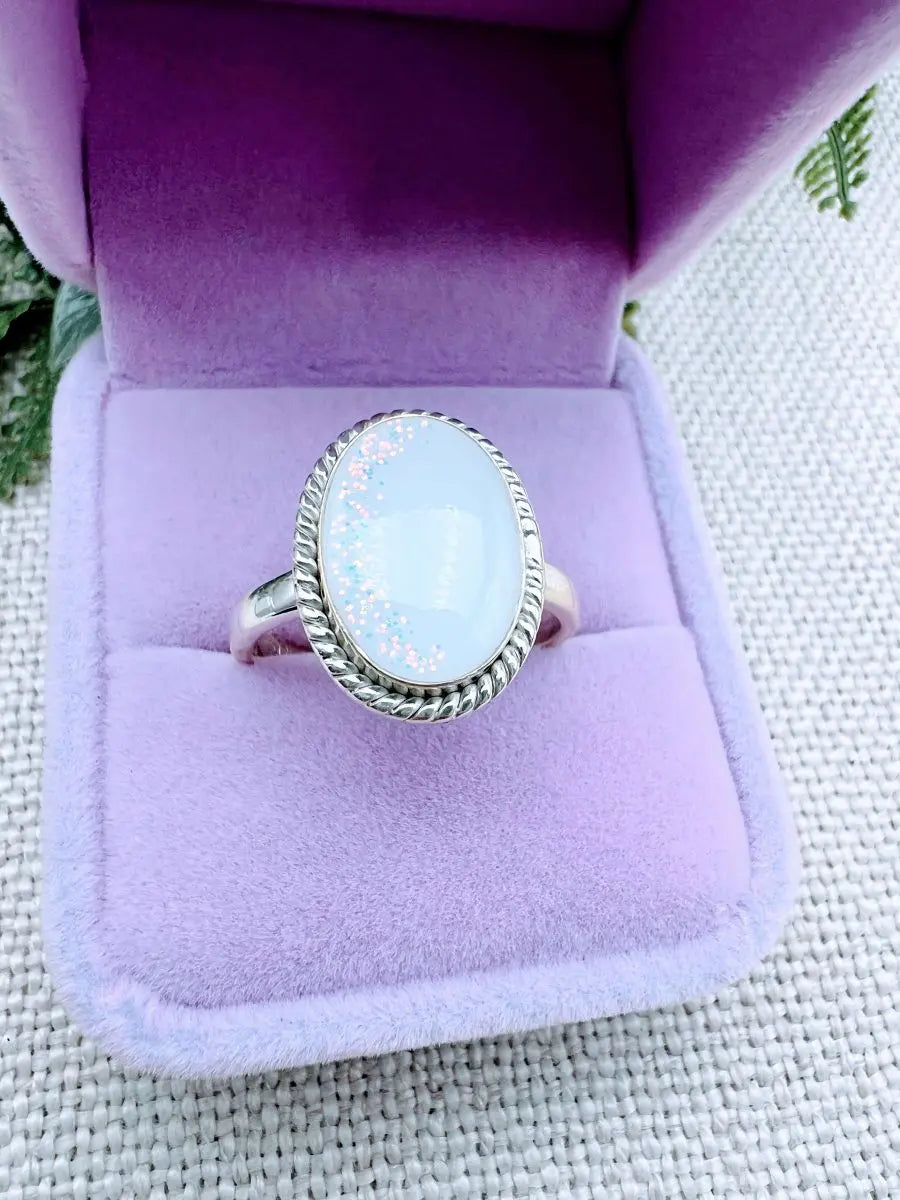 Laura is a bold, chunky statement ring designed to hold something deeply meaningful. Featuring a large 21 × 14 mm oval setting in sterling silver, this piece is made to showcase breastmilk, ashes, or another treasured inclusion in a way that feels strong, intentional, and timeless.
