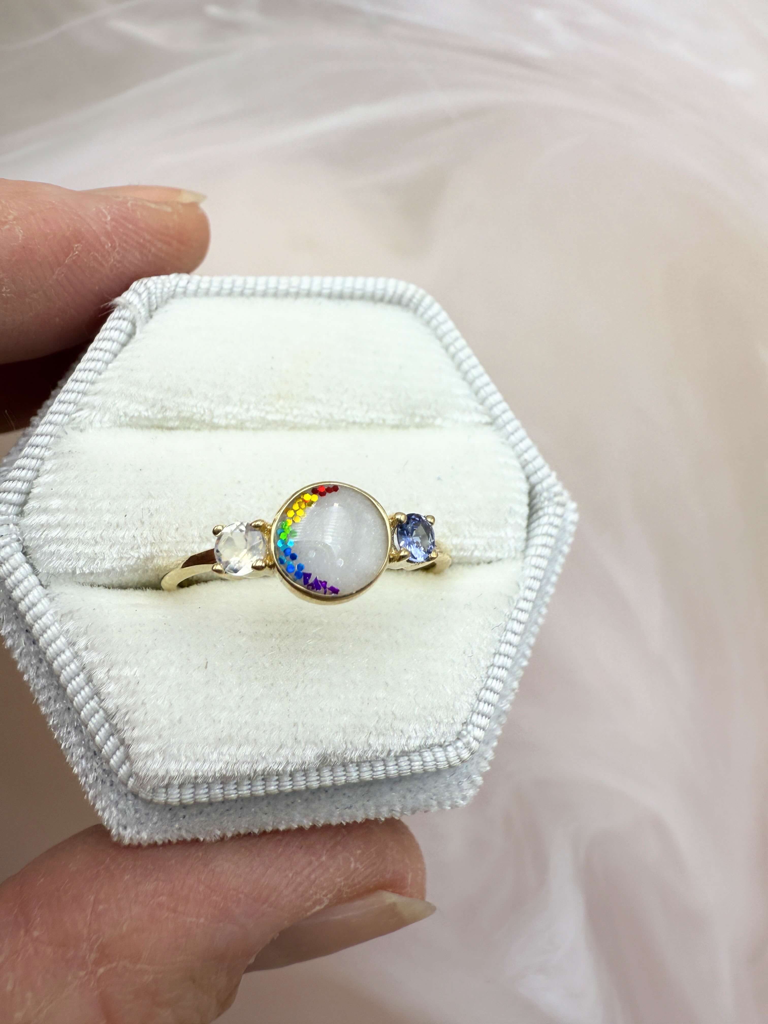 Each keepsake stone is individually handcrafted, meaning no two pieces will ever be the same. Due to the nature of resin and the handcrafting process, small bubbles or subtle surface variations may be present. These are a natural part of creating something by hand and are what make each piece uniquely yours. Please note that plated finishes are not permanent and may wear over time depending on use and care.
